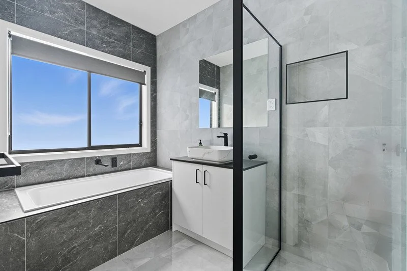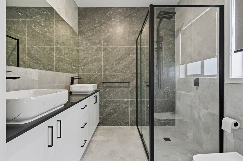 * **2 sleek bathrooms** with *floor-to-ceiling porcelain tiles*